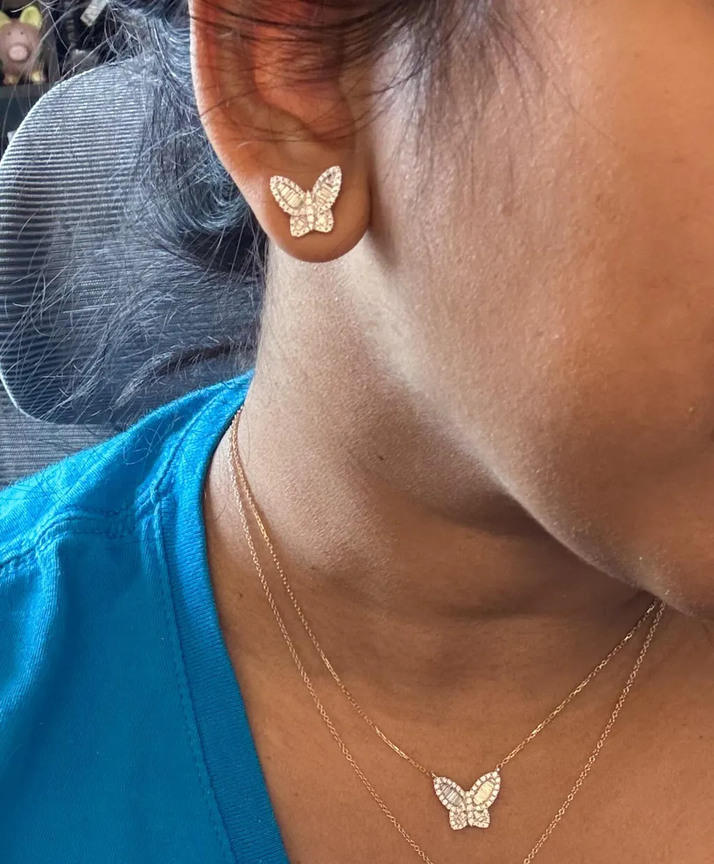 I have had the large butterfly necklace for a few years so I finally got these medium butterfly earrings & I LOVE them! I should’ve gotten them sooner. I was worried it might be too many butterflies but they look so nice together.