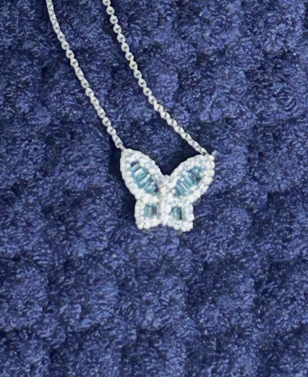 Petite Aquamarine and Diamond Butterfly Pendant